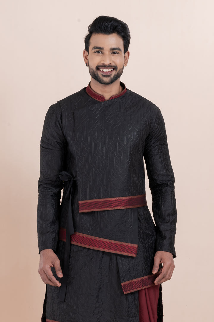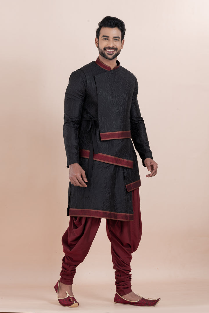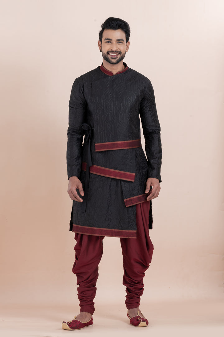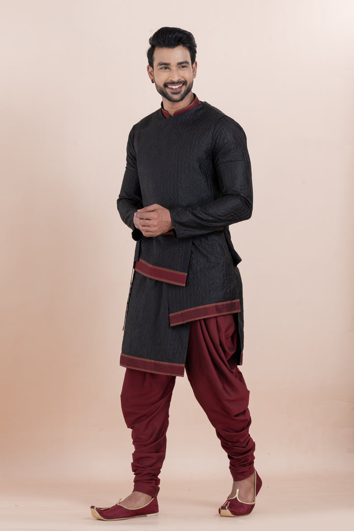 Angasudha Black Asymmetric Kurta with Maroon Dhoti Set