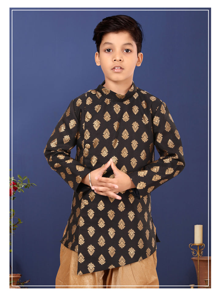 Angasudha Black Brocade Kurta with Golden Dhoti Pants – Boys' Festive Royal Wear Set