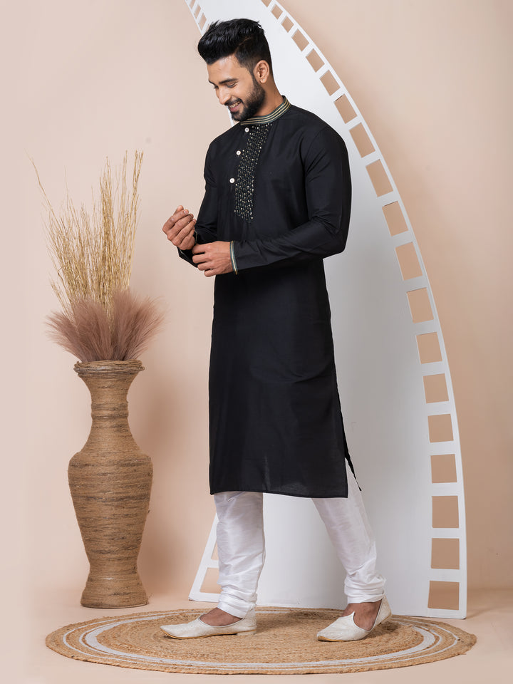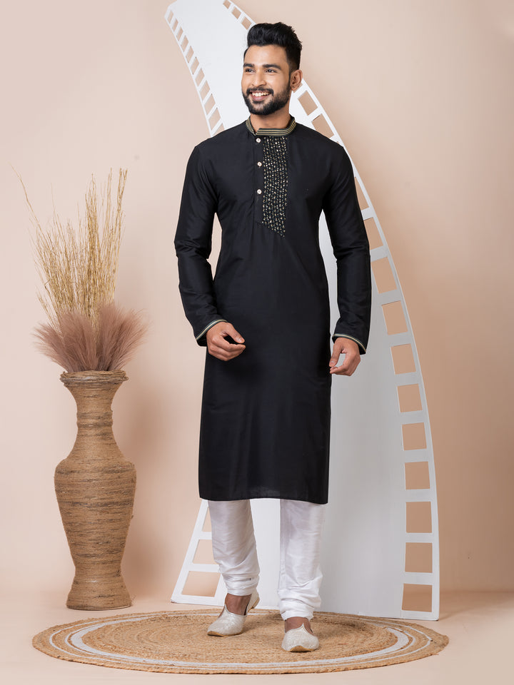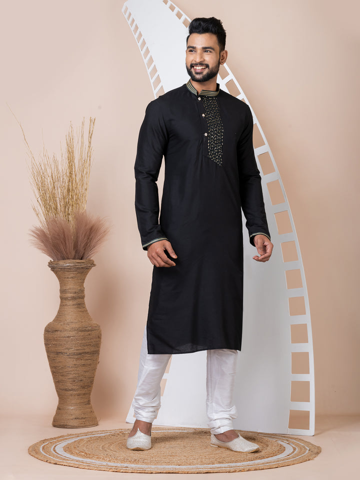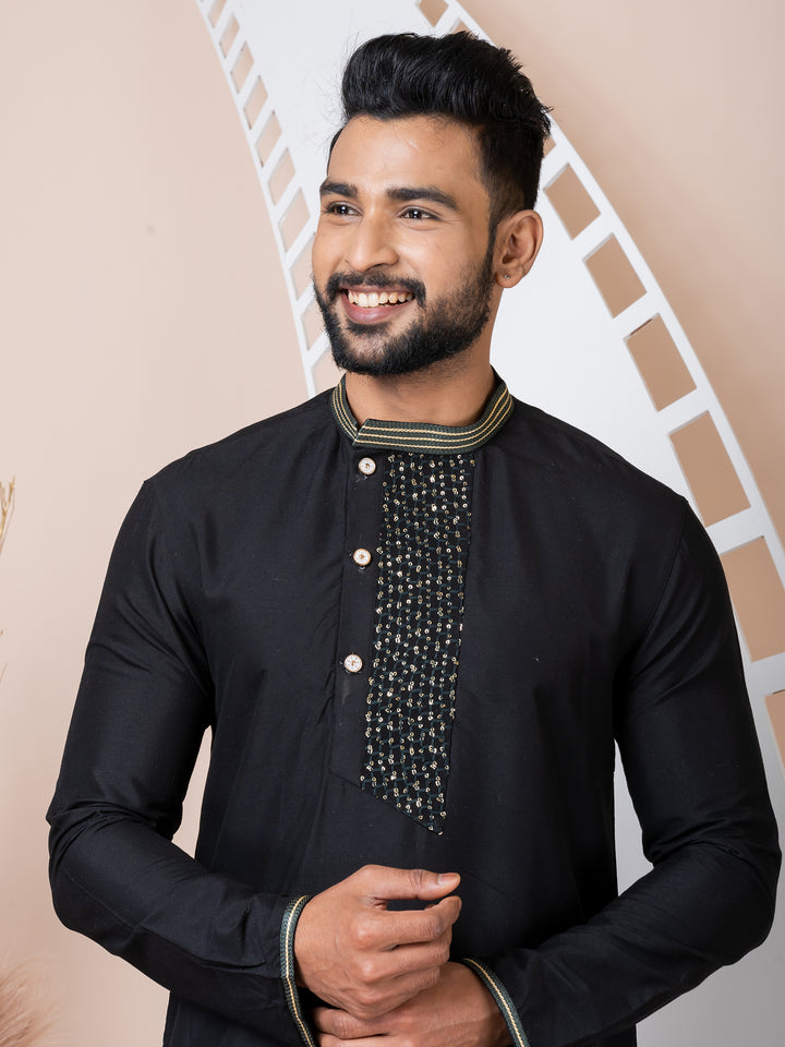 Elegant, refined, and celebration-ready — this black kurta is your go-to for upscale ethnic events.
