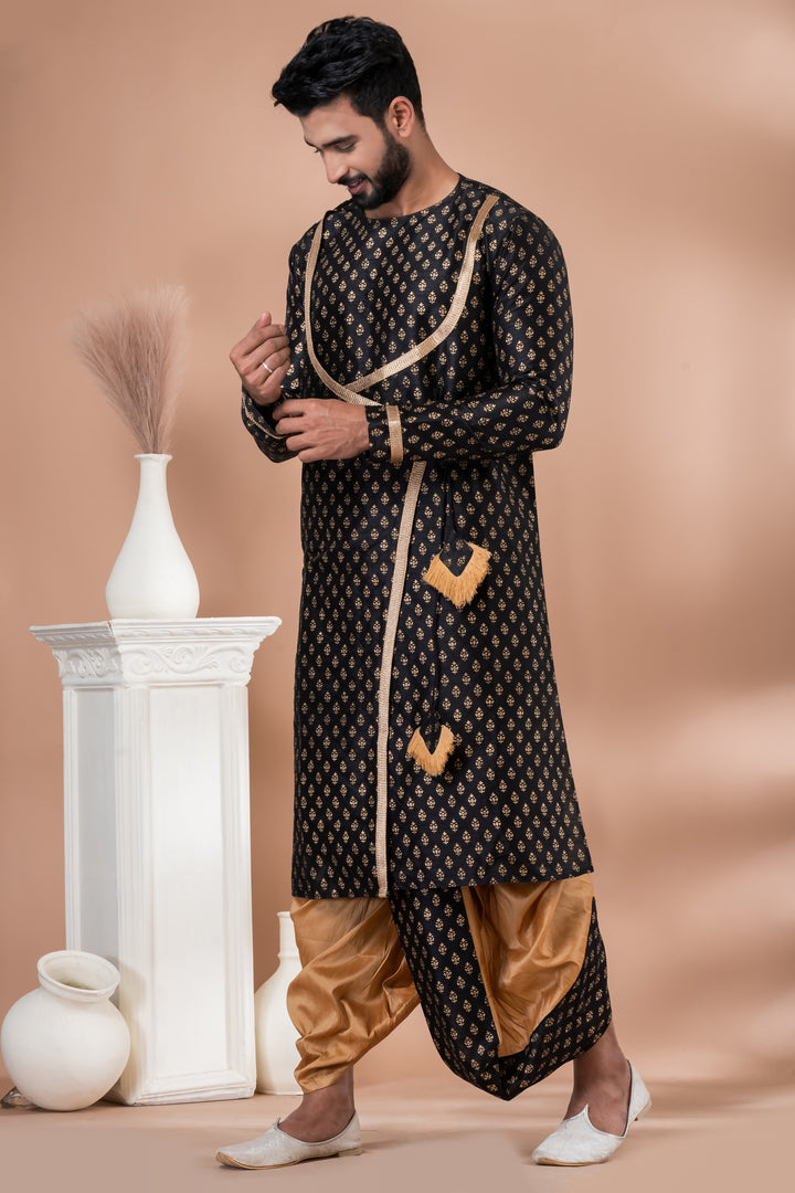 Angasudha Black & Gold Printed Indo-Western Dhoti Kurta Set