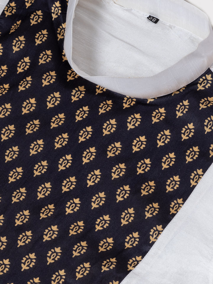 Angasudha Black & White Banarasi Dhupion Silk Kurta with Dupion Silk Pyjama