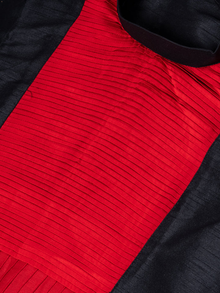 Kurta Fabric: Black Dupion Silk with Red Pintuck Center Panel