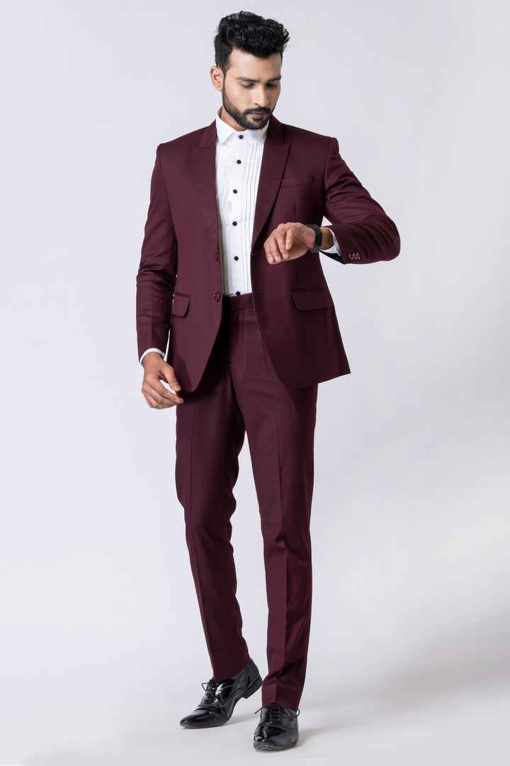 Steal the spotlight in this stunning Wine Red Blazer Set, tailored for the man who isn't afraid to stand out. With its rich, luxurious tone and precision tailoring, this suit redefines elegance with a bold twist — perfect for receptions, festive parties, and high-profile events.