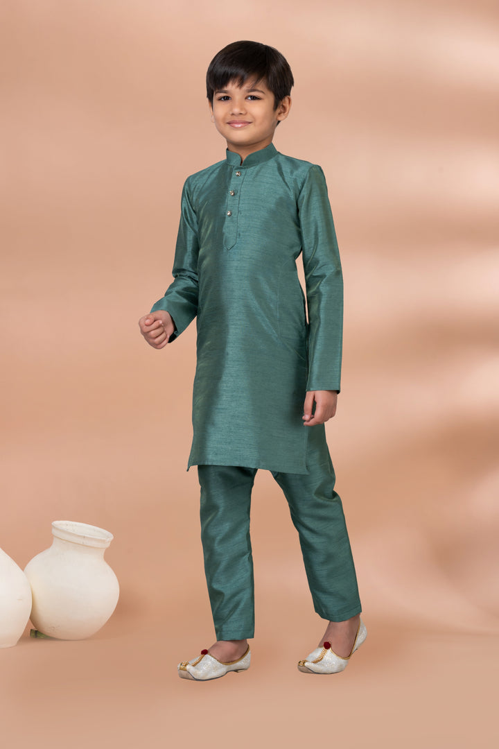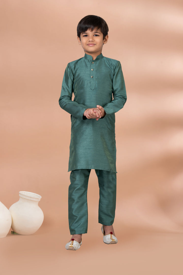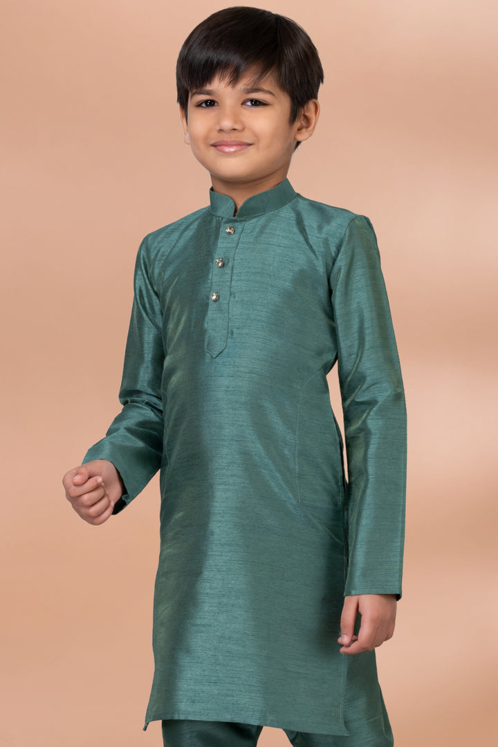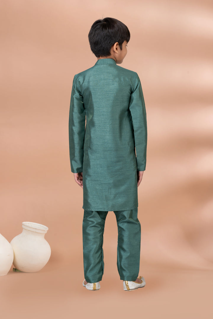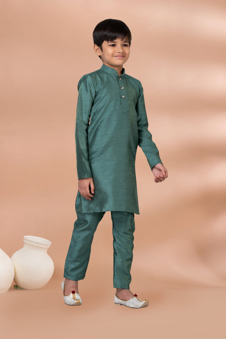 Angasudha Bottle Green Silk Blend Kurta Pajama Set for Boys