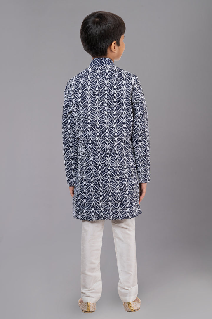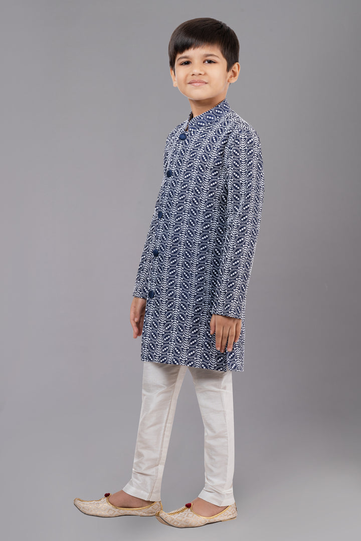 Angasudha Boys' Blue Printed Kurta with Cream Churidar Set