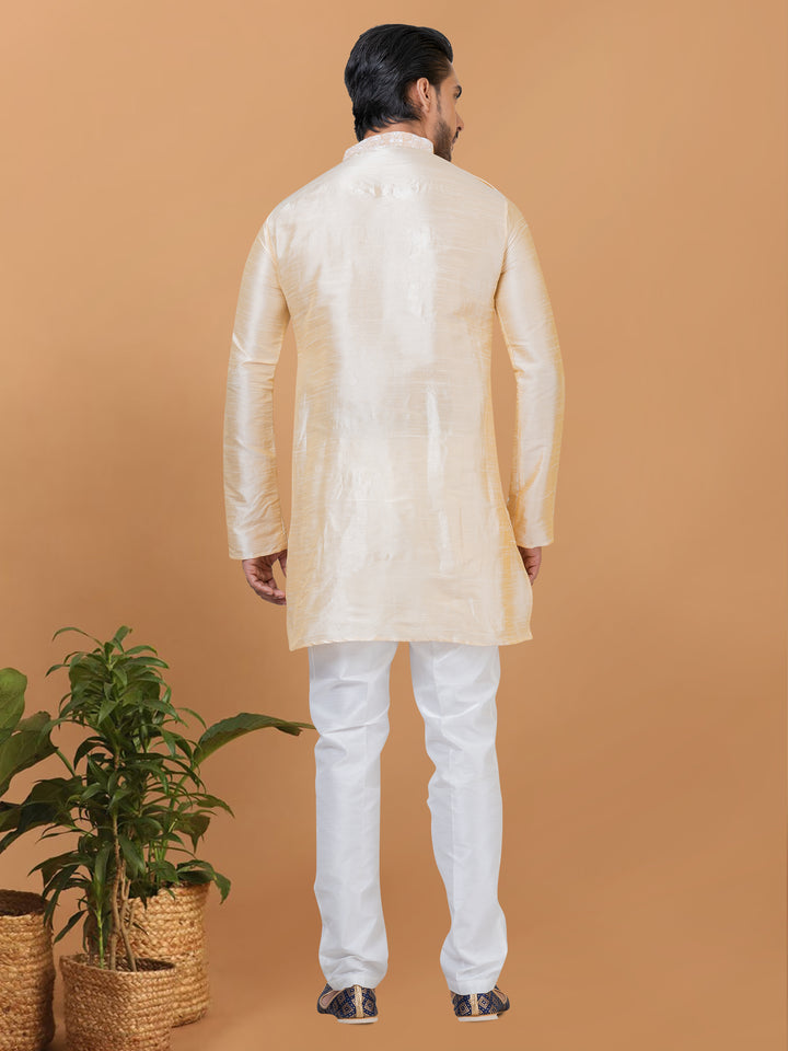 Angasudha Classic Beige Banarasi Dhupion Silk Kurta Pyjama Set