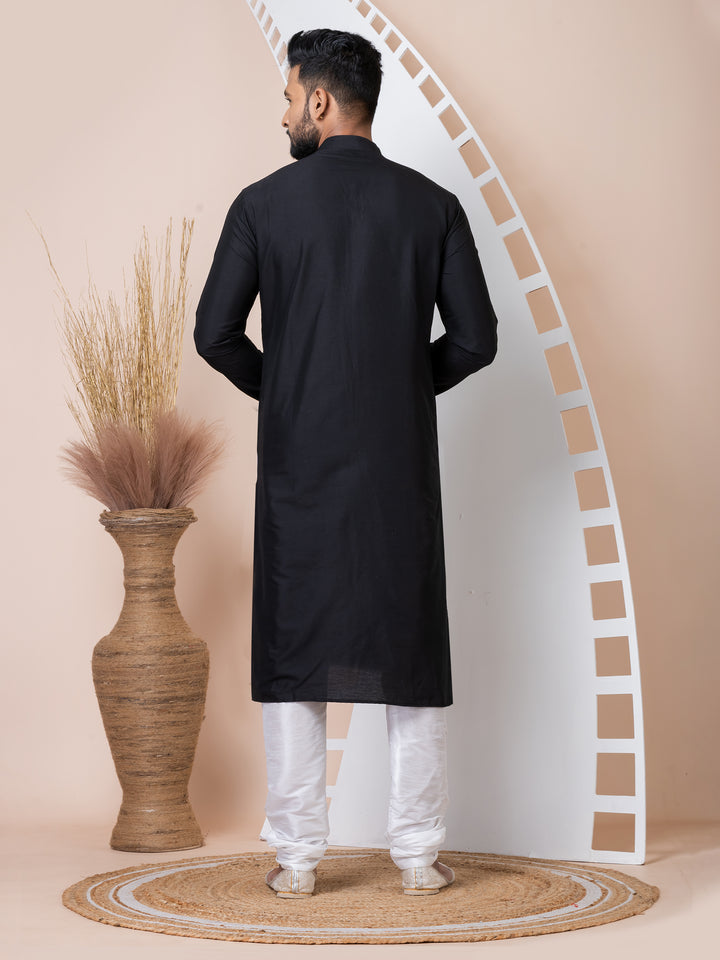 Angasudha Classic Black Embroidered Kurta Pyjama Set