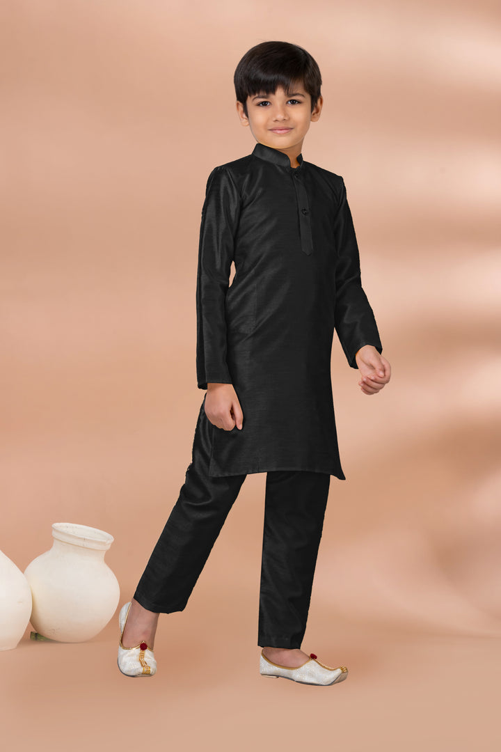 Angasudha Classic Elegance Boys' Black Kurta Pyjama Set