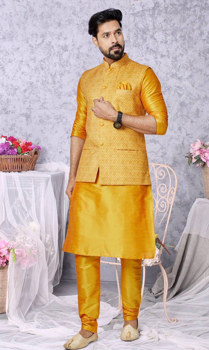 Kurta & Pyjama: Dupion Silk in Matching Mustard