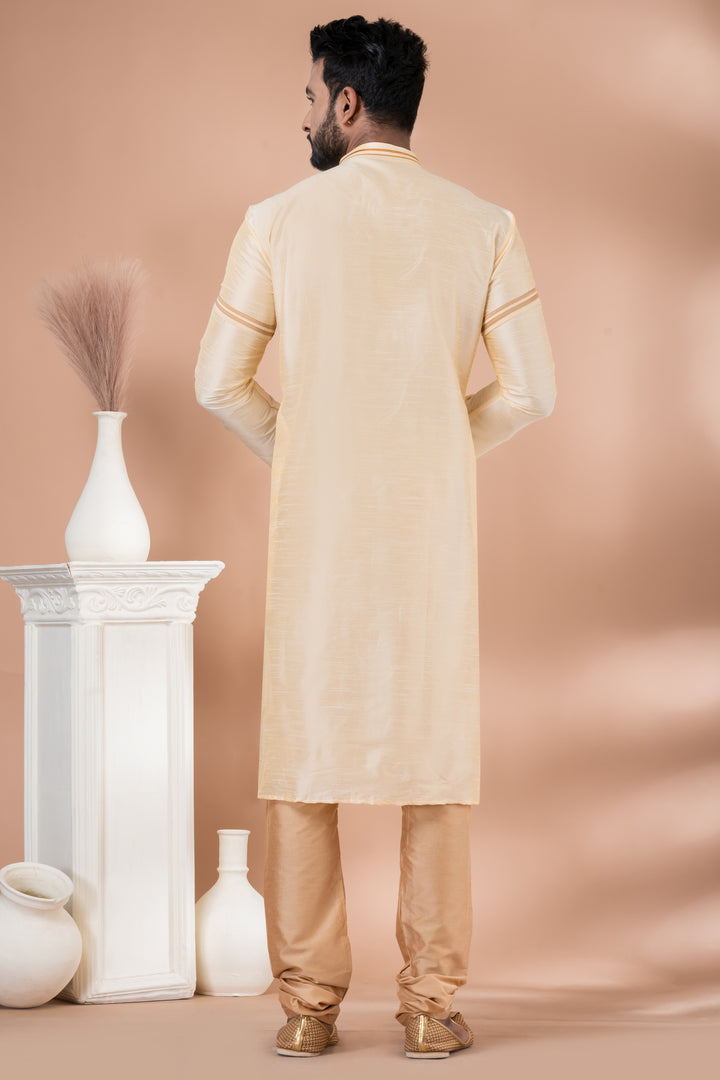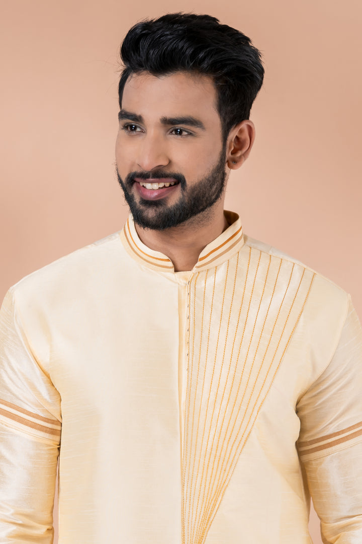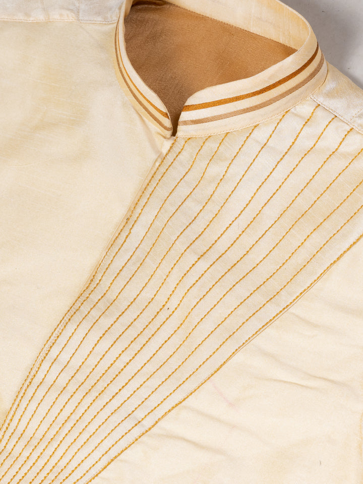 Angasudha Cream Dupion Silk Kurta with Embroidered Detail and Viscose Pyjama