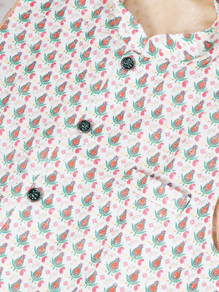 Angasudha Cream Floral Printed Waistcoat with White Kurta Pyjama Set