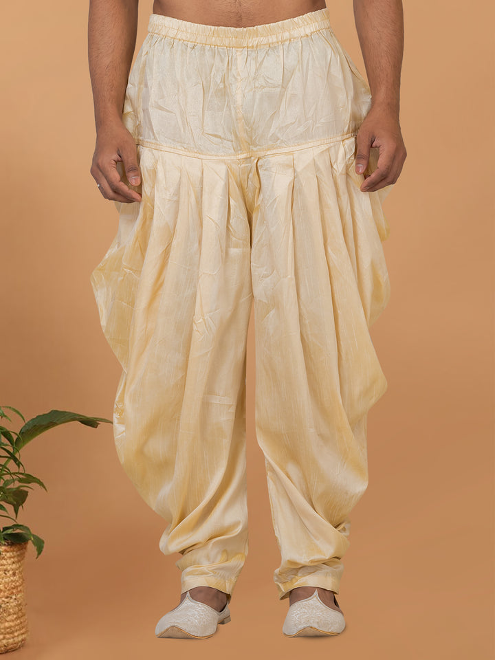 Exude understated grace in our Elegant Cream Side-Pleated Dhoti Pant. Designed in a soft cream hue with a subtle sheen, this dhoti features finely stitched side pleats that enhance its traditional structure and flow. The elasticated waistband ensures a snug yet flexible fit, offering day-long comfort with timeless appeal.