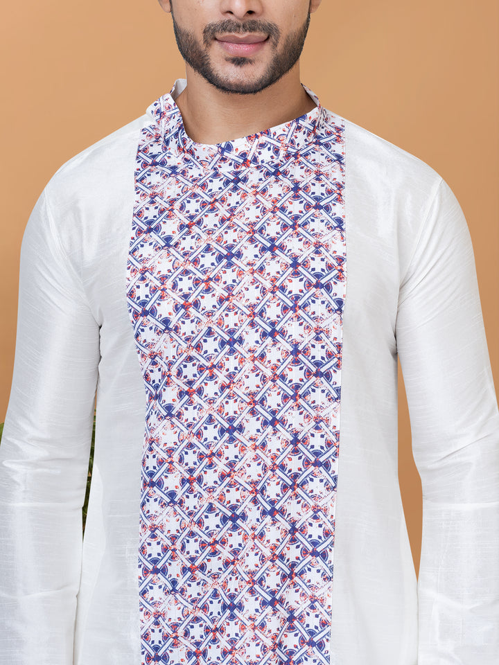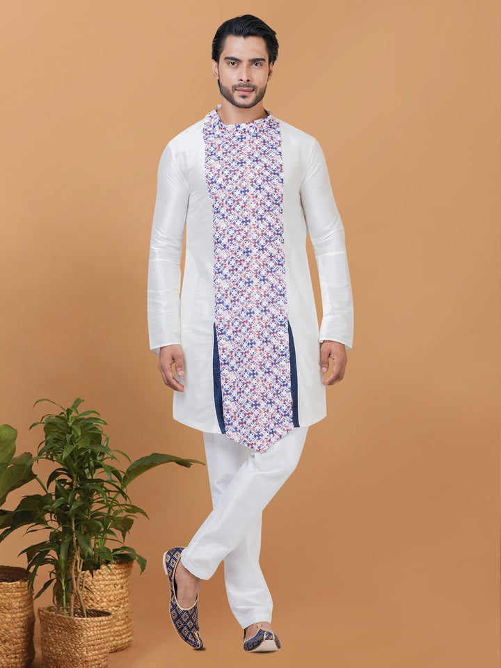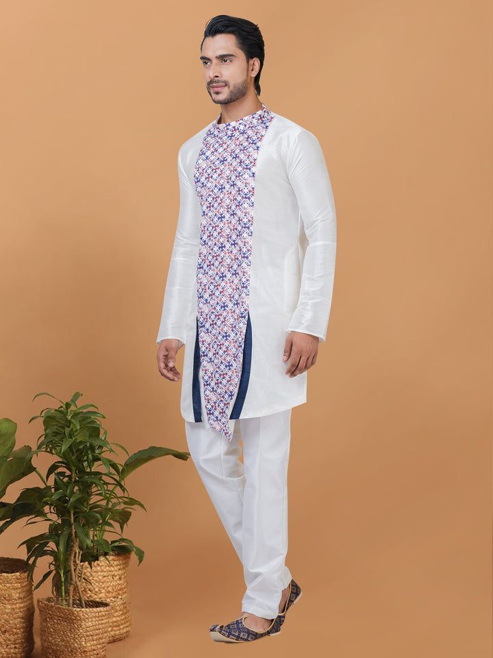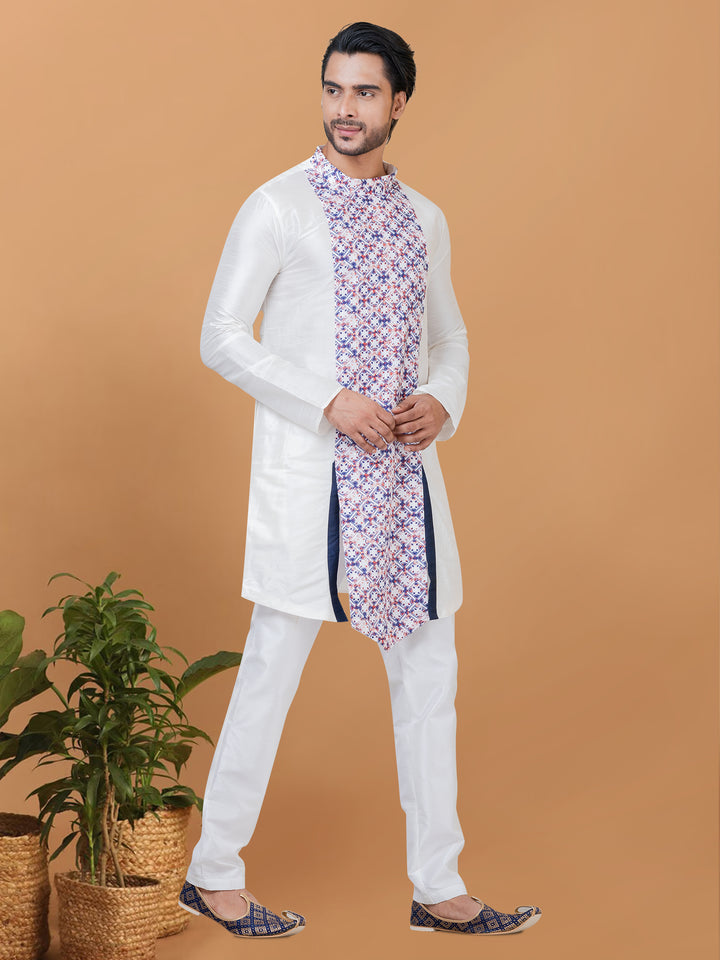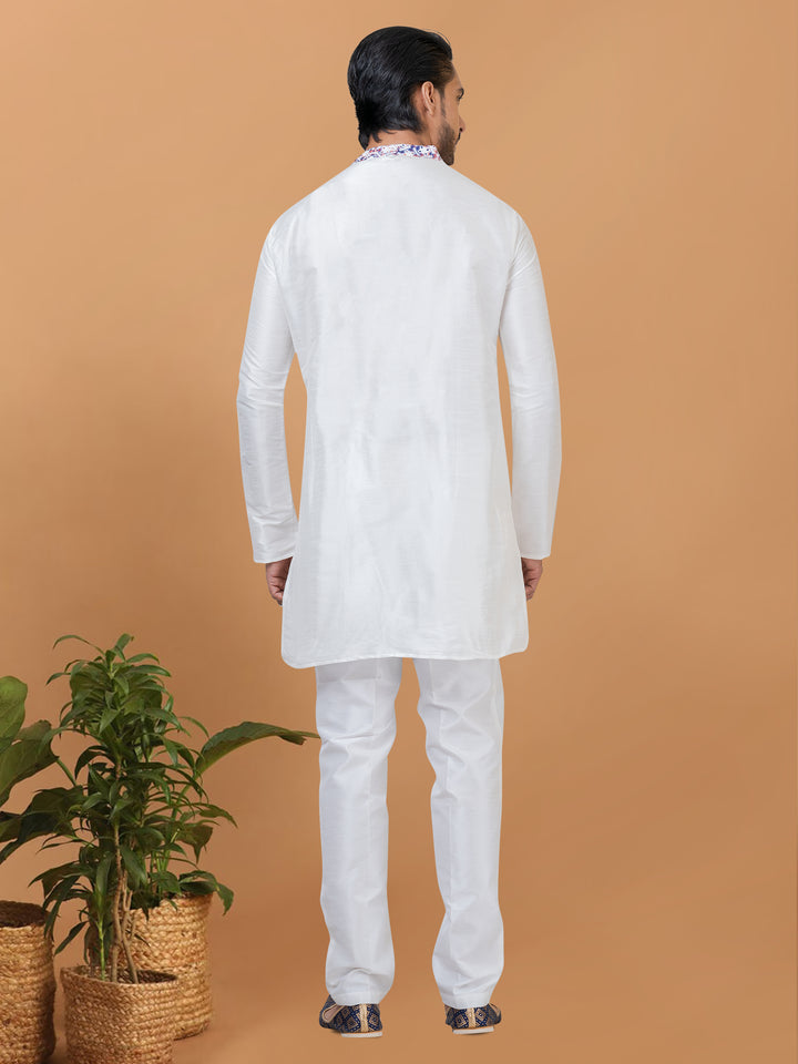 Angasudha Elegant White Banarasi Dhupion Silk Kurta Pyjama Set