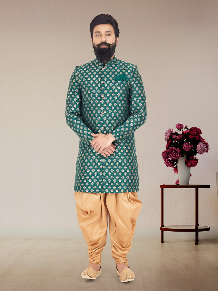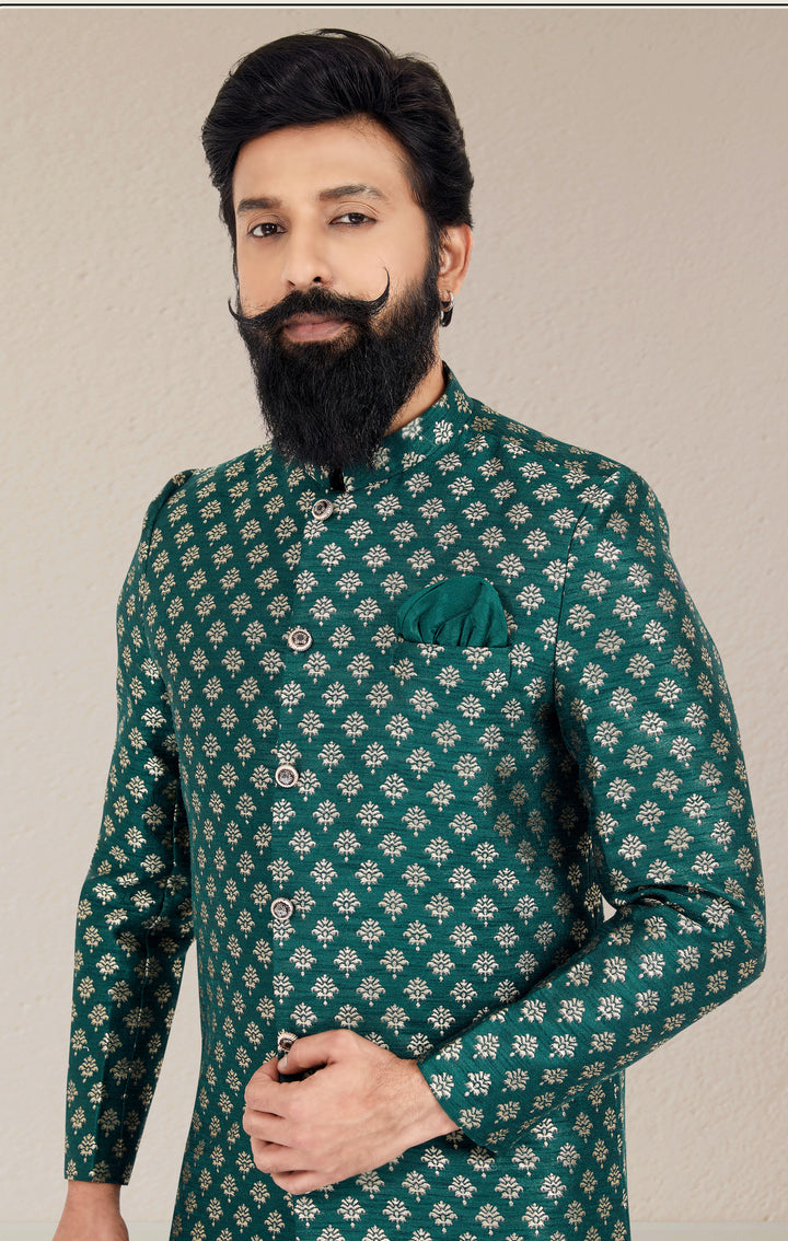 Angasudha Emerald Charm Jodhpuri Set with Golden Dhoti