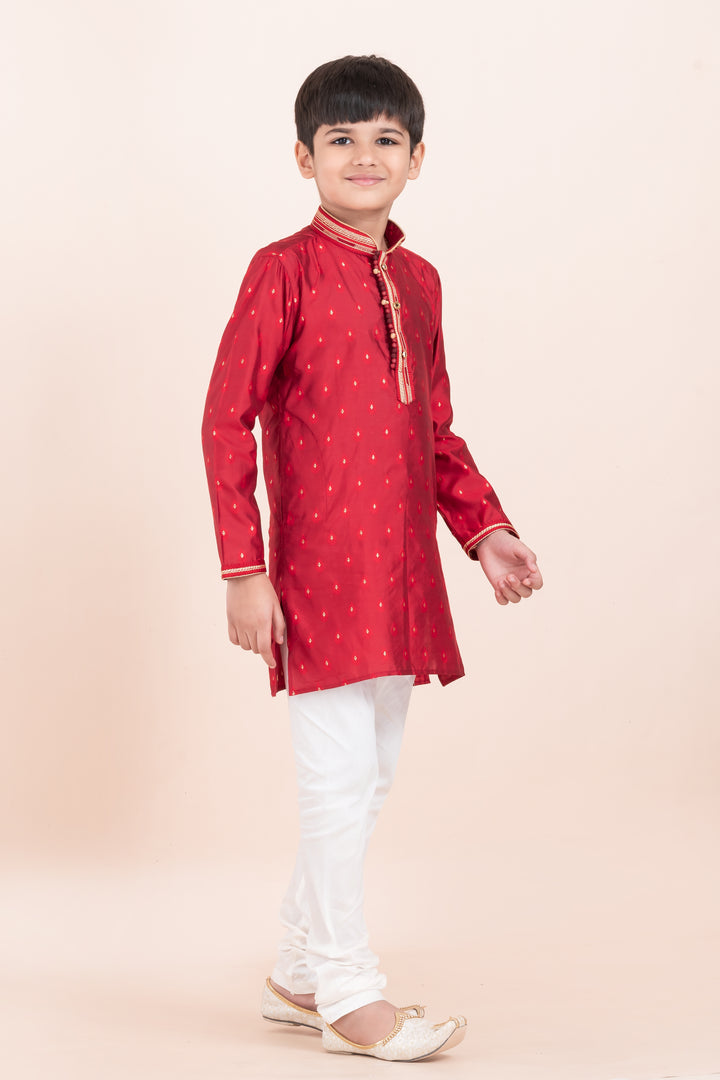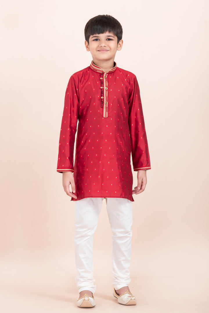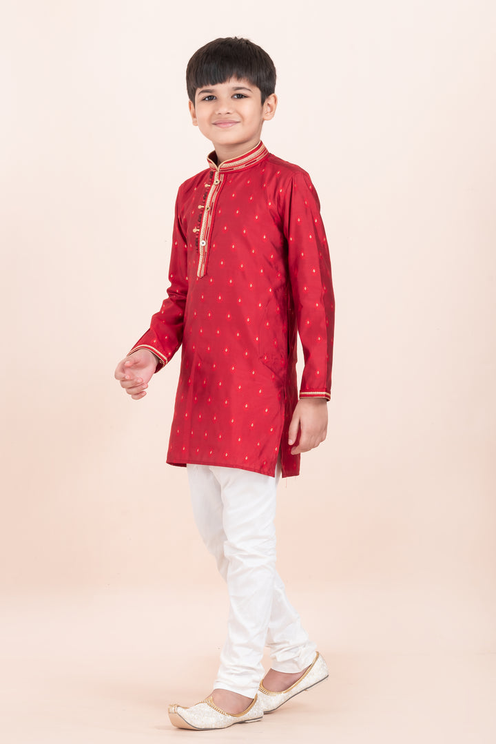 Angasudha Festive Red Embellished Kurta Set for Boys