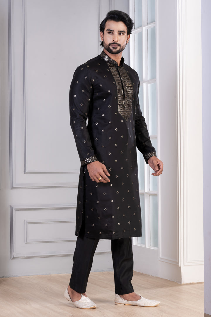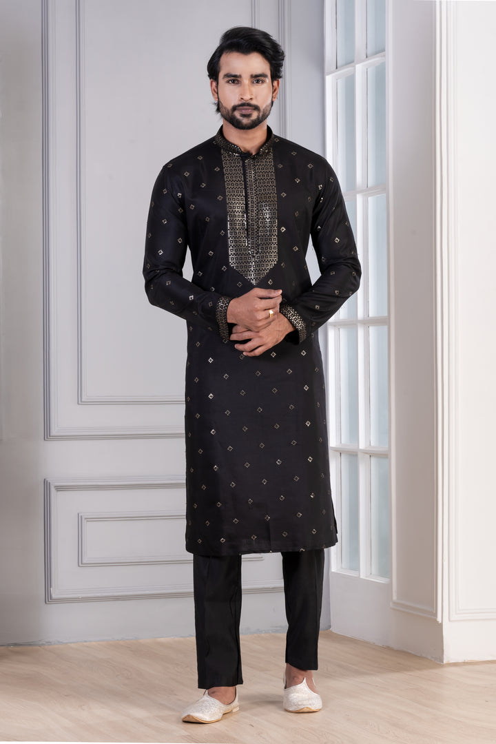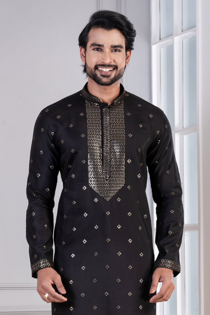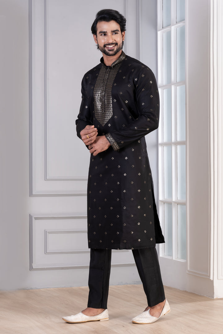 Angasudha Glame Cotton Black Kurta Pyjama Set
