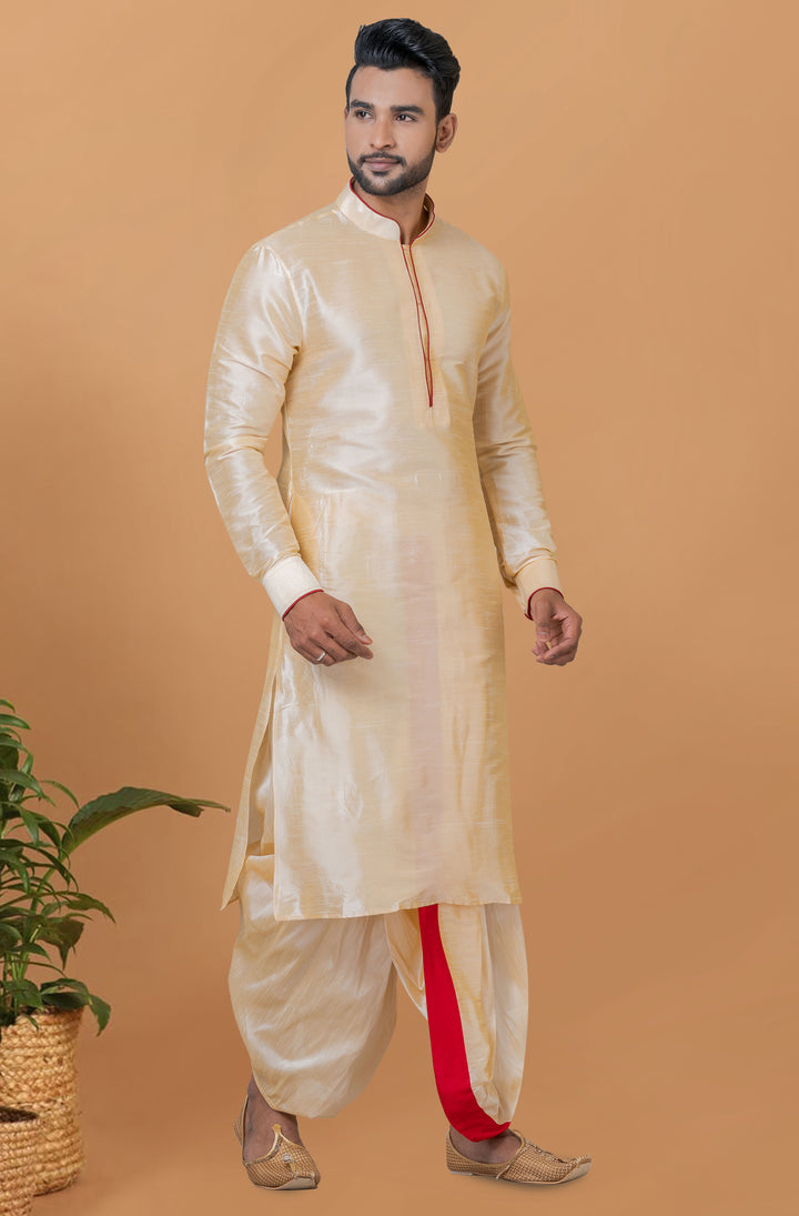 Angasudha Golden Aura Dhoti Kurta Set with Red Accent