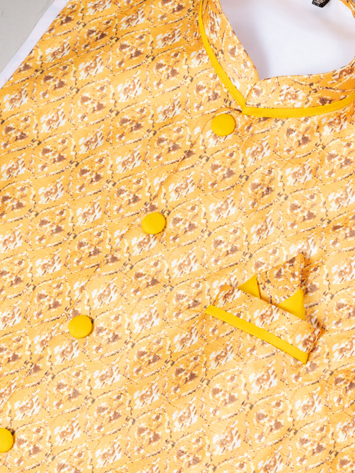 Angasudha Haldi Yellow Banarasi Silk Kurta Pyjama with Self-Embroidery Silk Jacket