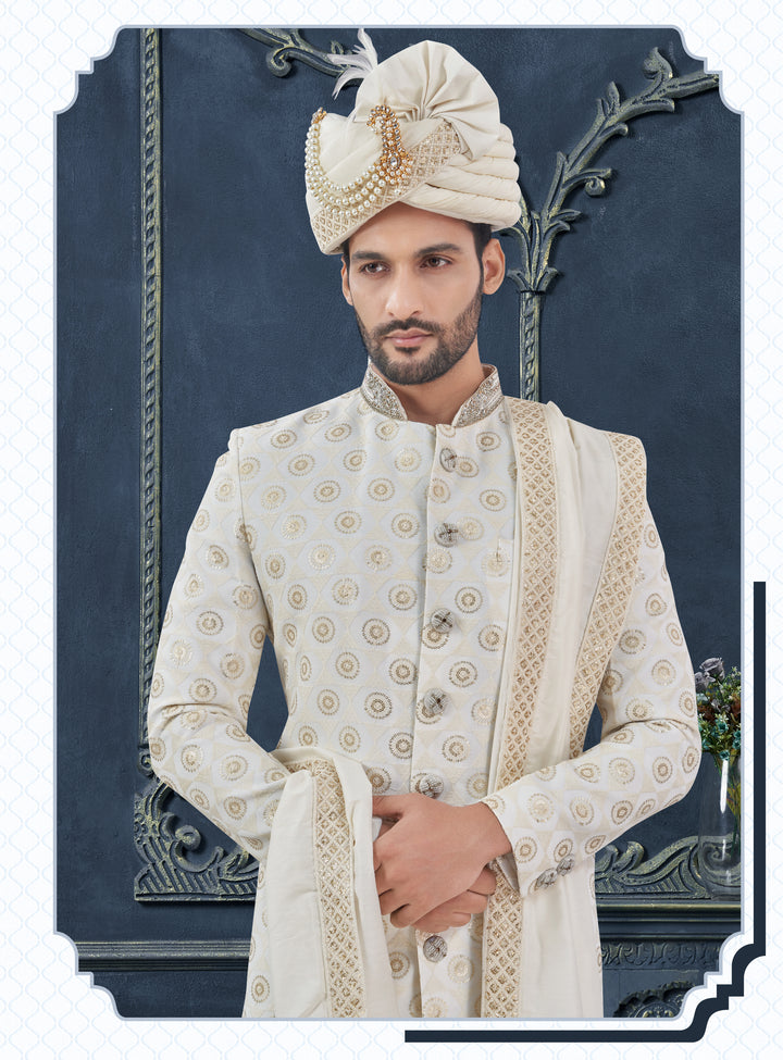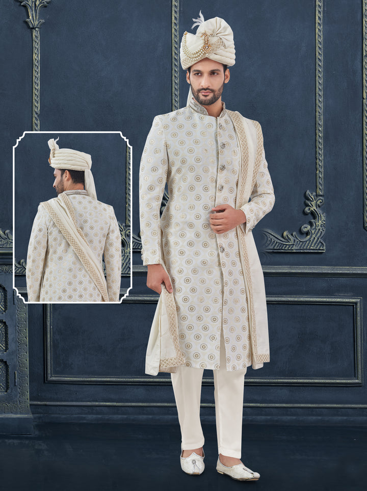 Angasudha Ivory & Gold Circular Motif Sherwani Set – Royal Groom Edition