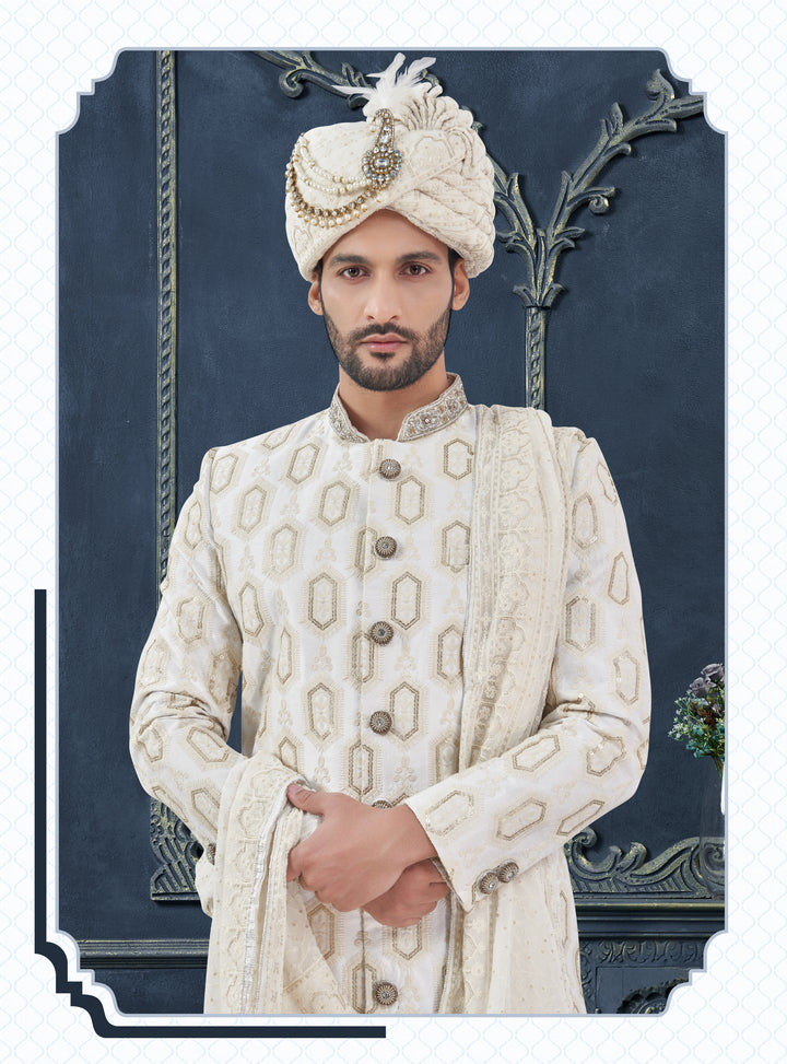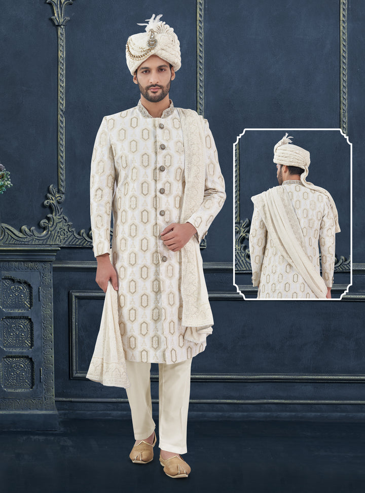 Angasudha Ivory Majestic Groom Sherwani Set – Perfect for Wedding & Bridal Occasions
