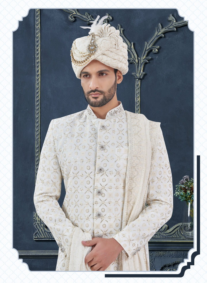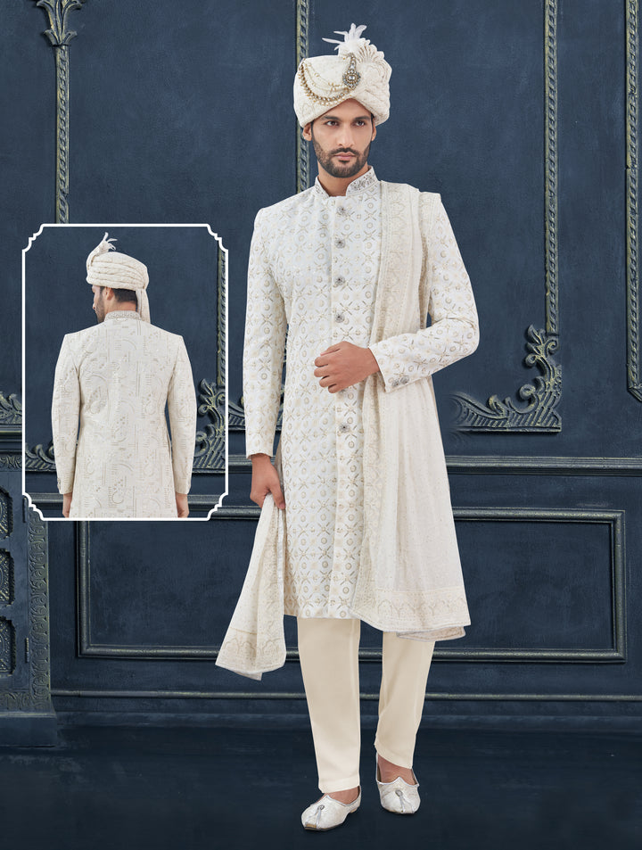 Angasudha Ivory Royal Embroidered Sherwani Set – Groom & Special Occasion Wear