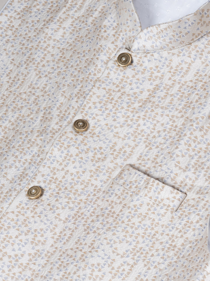 Angasudha Ivory Sequin-Embroidered Waistcoat with Beige Kurta Pyjama Set