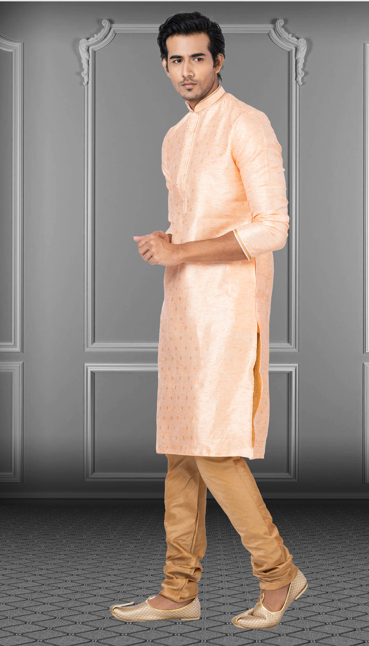 Angasudha Light Peach Self-Textured Silk Kurta Pyjama Set