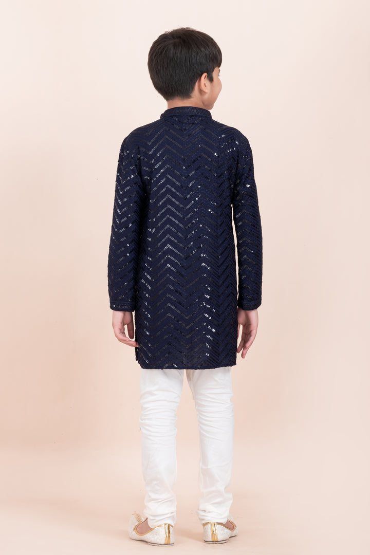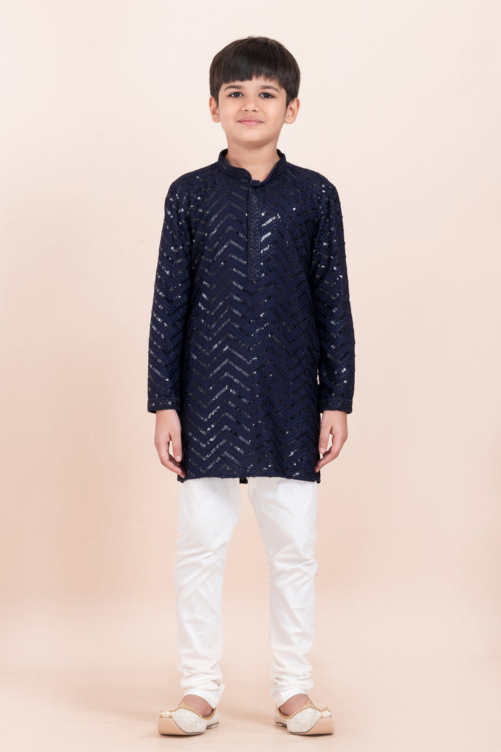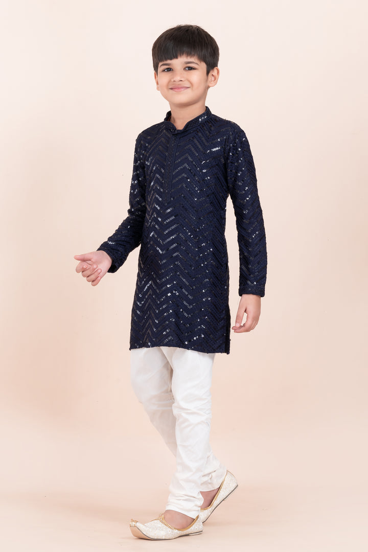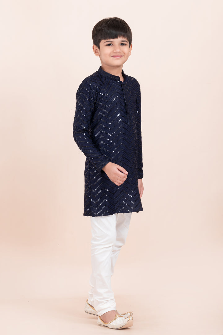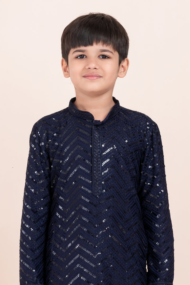 Angasudha Midnight Blue Sequin Embroidered Kurta Set for Boys