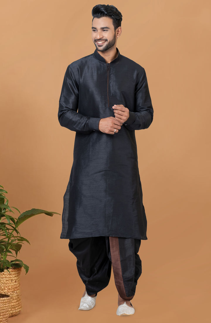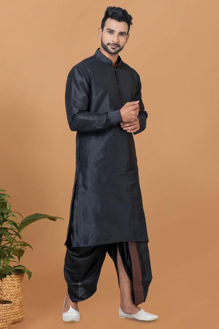 Angasudha Midnight Charm Dhoti Kurta Set with Coffee Brown Contrast