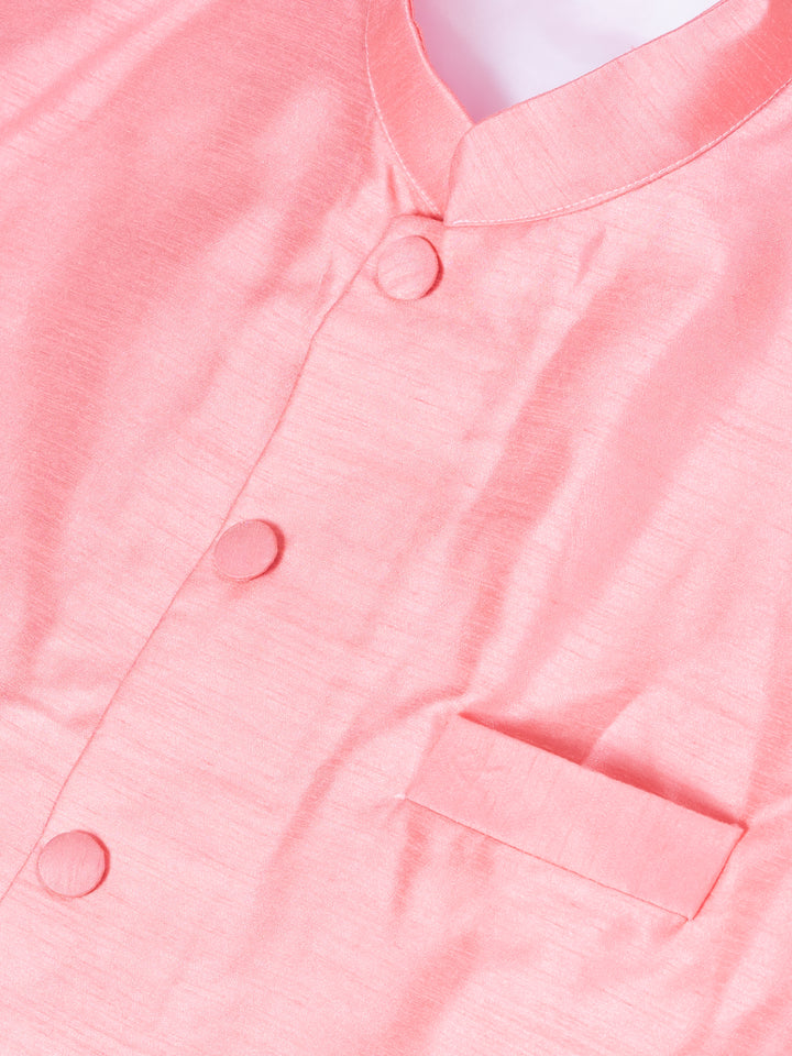 Angasudha Multicolor Printed Kurta Set with Solid Coral Pink Banarasi Silk Jacket