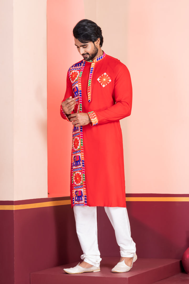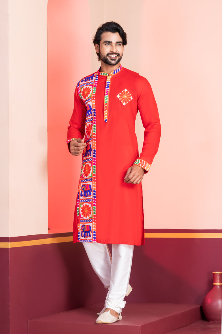 Angasudha Navratri Special Red Kurta Pyjama Set