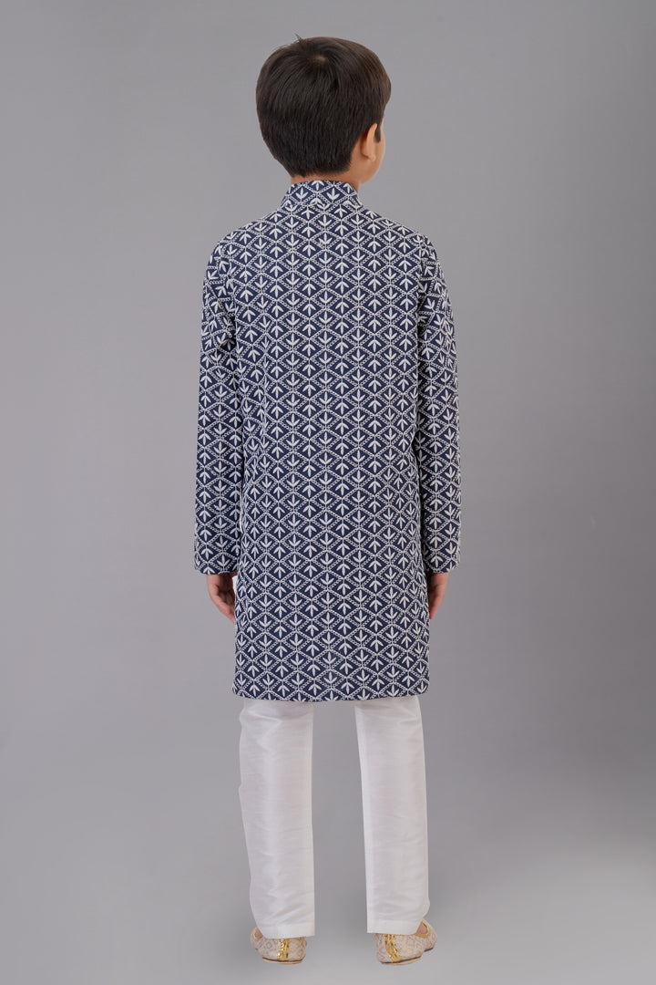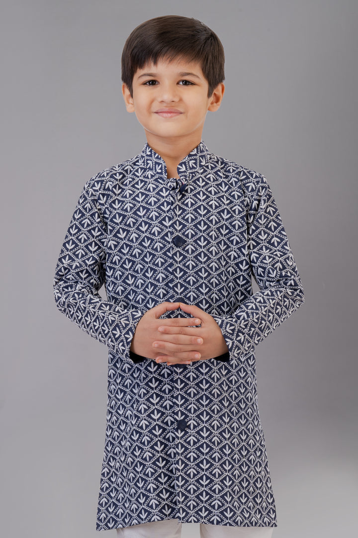 Angasudha Navy Blue Printed Kurta Pajama Set for Boys