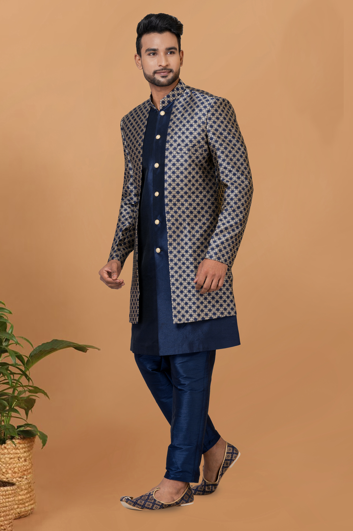 Angasudha Navy & Gold Jacquard Indo-Western Set