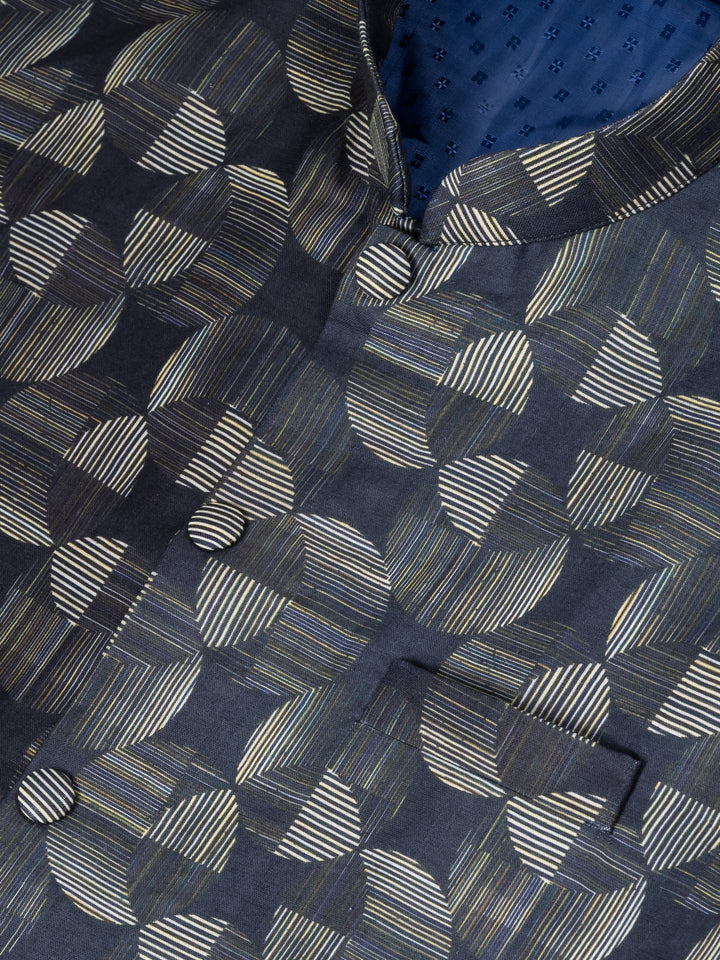 Exude bold elegance with this Olive Green Kurta Pyjama set, paired with a statement-making Black Waistcoat featuring contemporary geometric patterns. Crafted from a smooth art silk blend, the kurta and pyjama offer a sleek and structured silhouette, while the sleeveless waistcoat showcases a modern circular motif design in earthy tones—perfectly complementing the deep olive base.