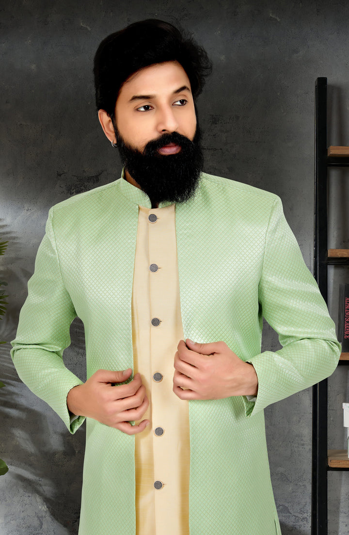 Angasudha Pastel Green & Beige Indo-Western Set for Men