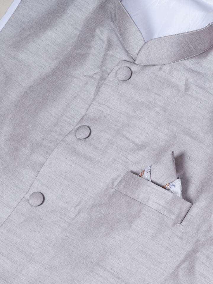 Angasudha Printed Silk Kurta Set with Solid Grey Banarasi Silk Jacket