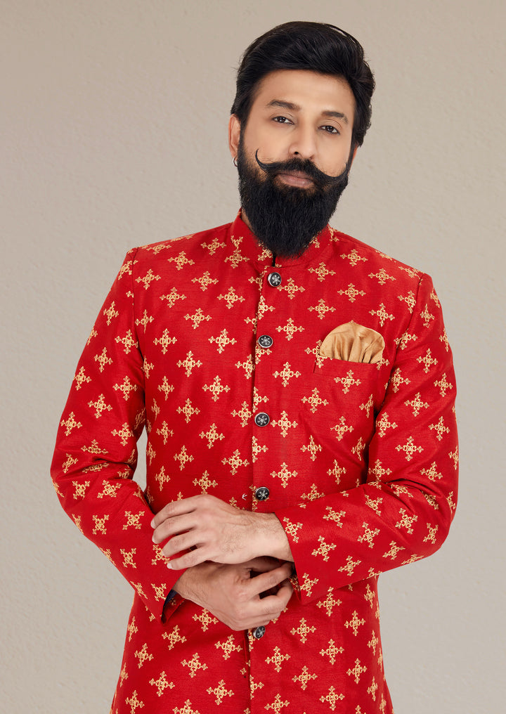 Angasudha Regal Red Embroidered Jodhpuri Set with Dhoti