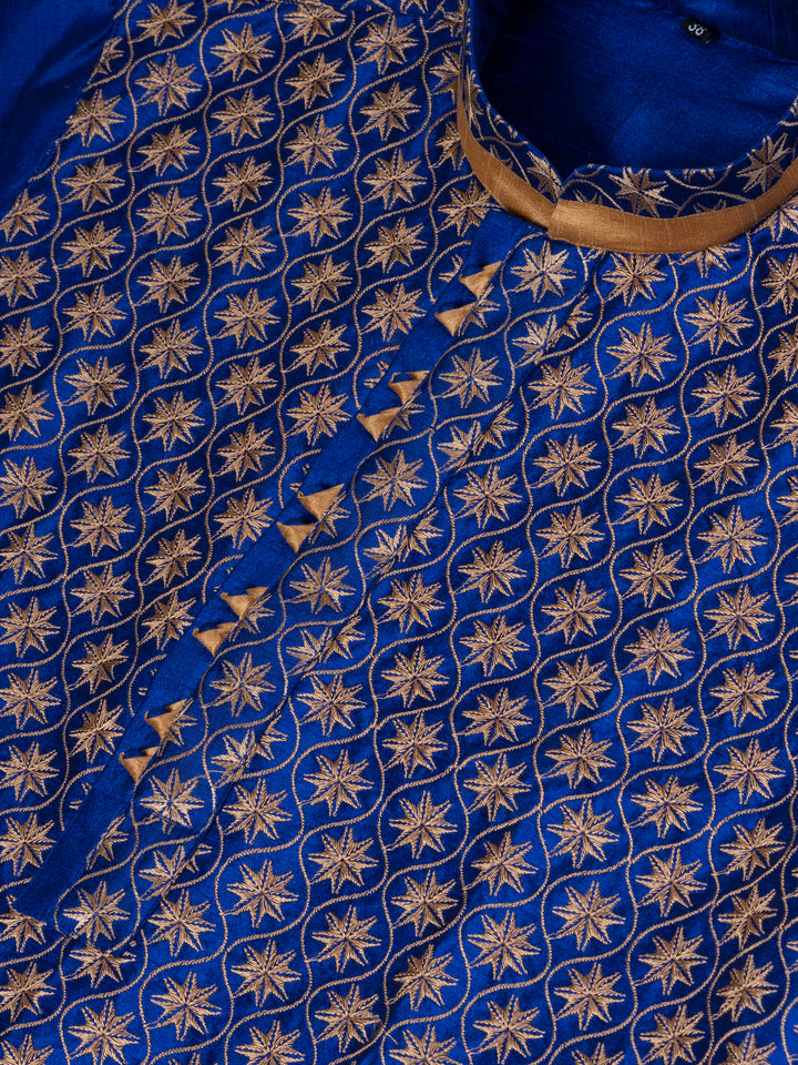 Angasudha Royal Blue Banarasi Dhupion Kurta Set with Golden Zari Embroidery