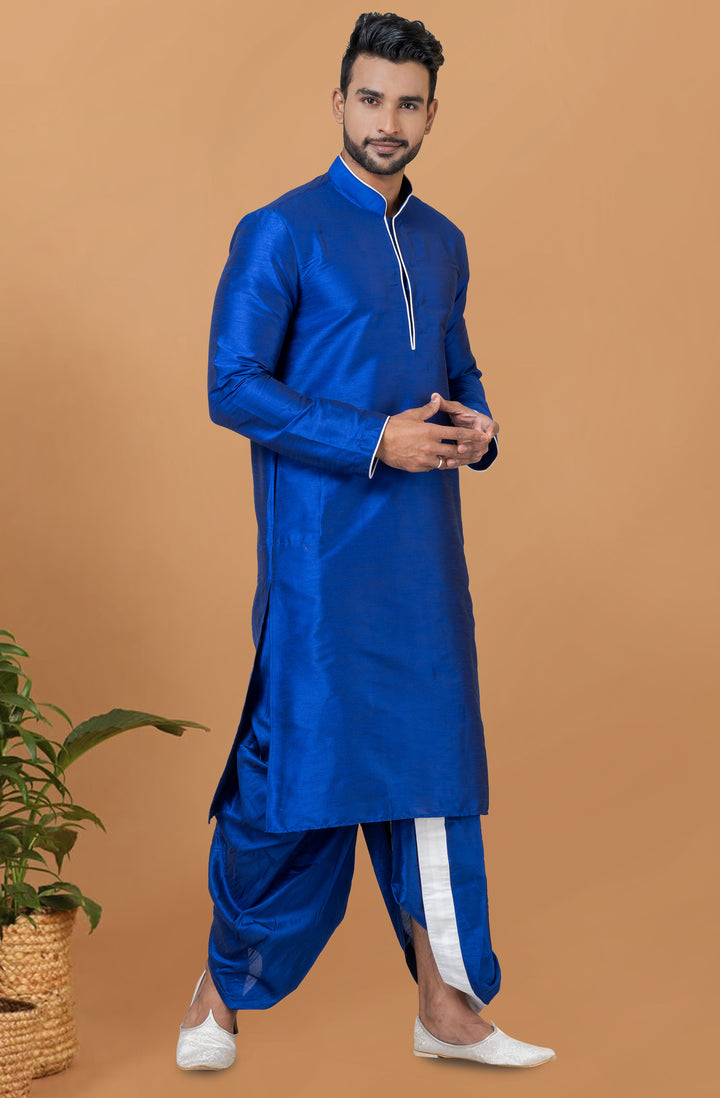 Angasudha Royal Blue Dhoti Kurta Set with White Contrast Detailing