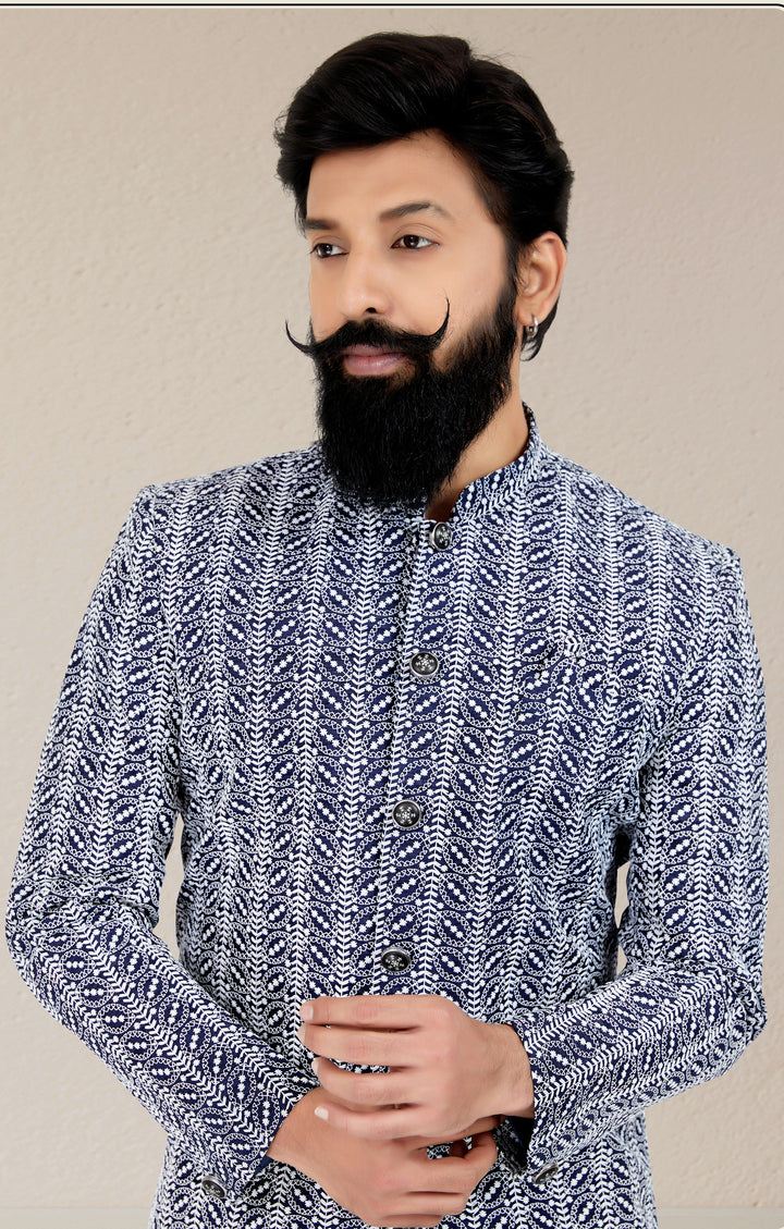 Angasudha Royal Navy Jacquard Jodhpuri Set with Churidar