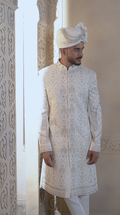 Angasudha Royal Pearl Embroidered Groom Sherwani