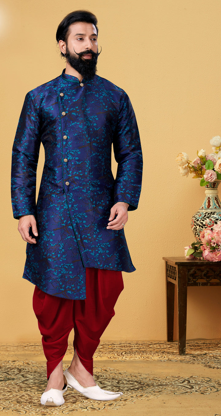 Angasudha Royal Teal Blossom Jacquard Silk Indo-Western Set