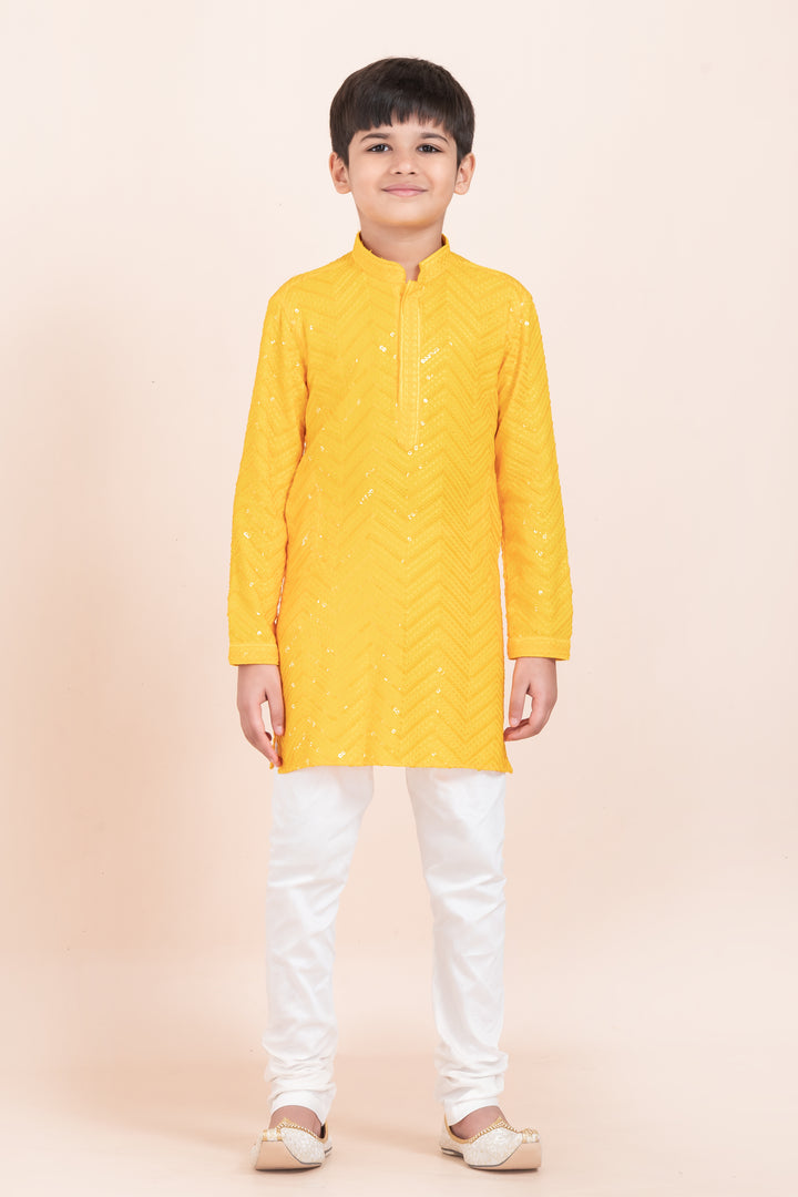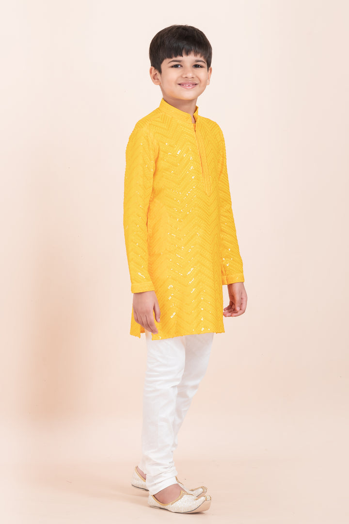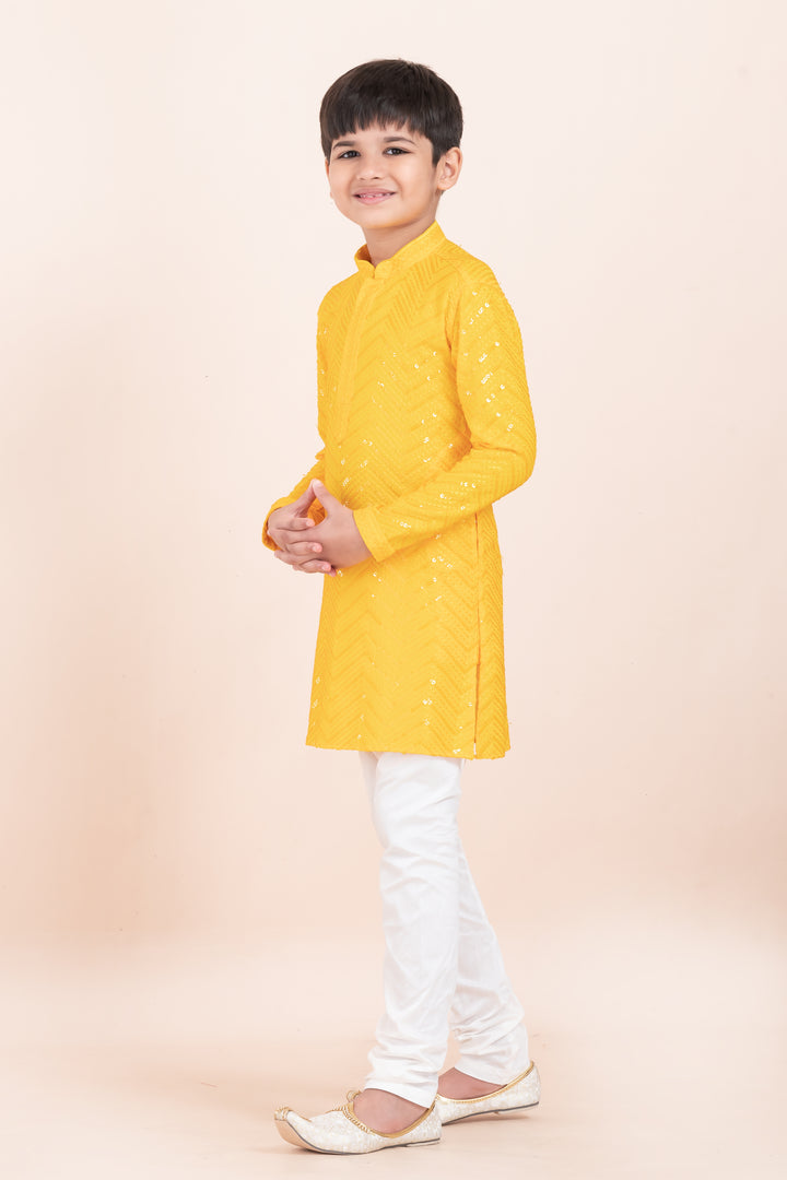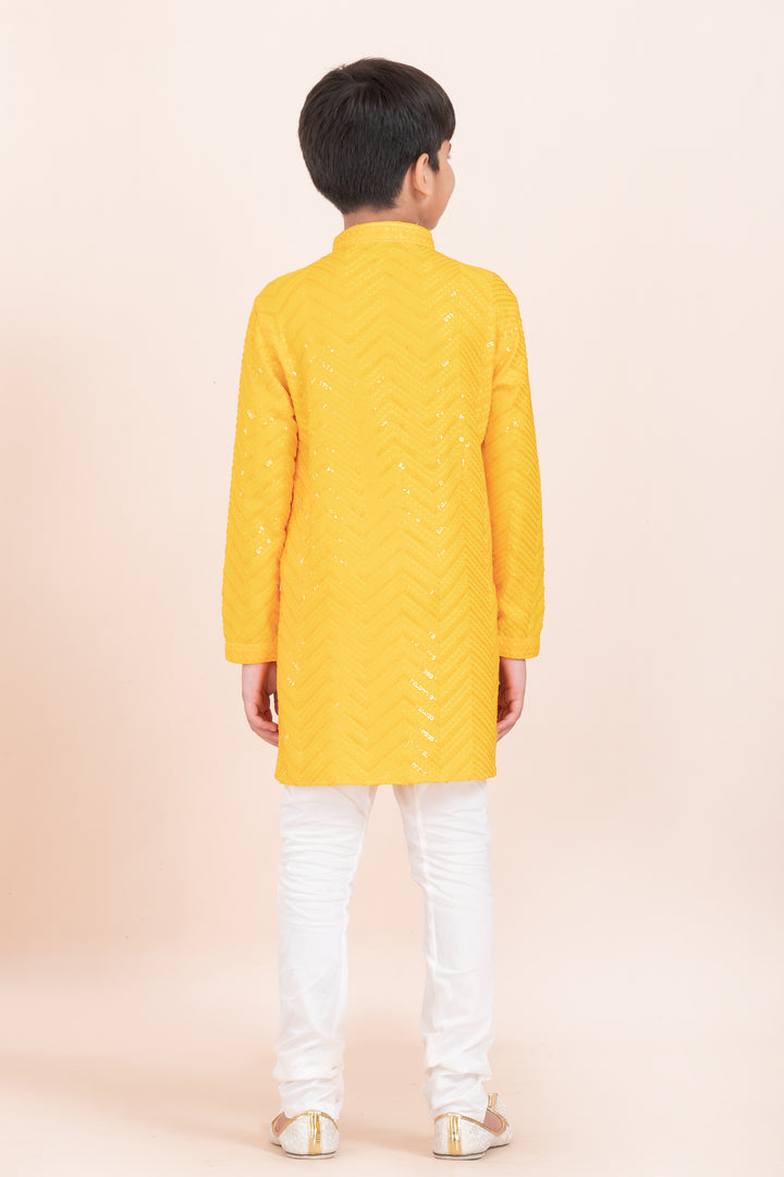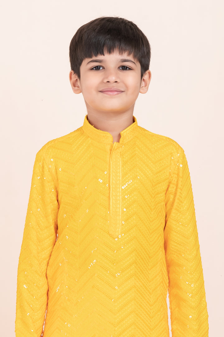 Angasudha Sunshine Yellow Sequin Embroidered Kurta Set for Boys