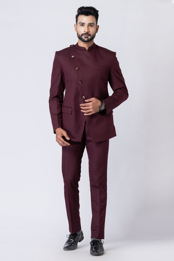 Angasudha Wine Asymmetric Jodhpuri Suit – Contemporary Royal Look for Celebrations