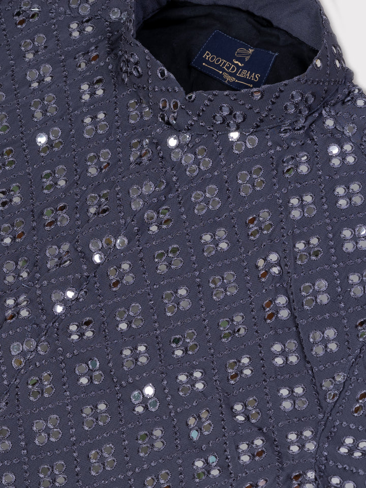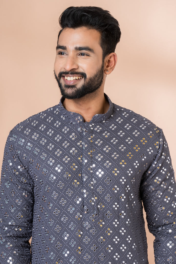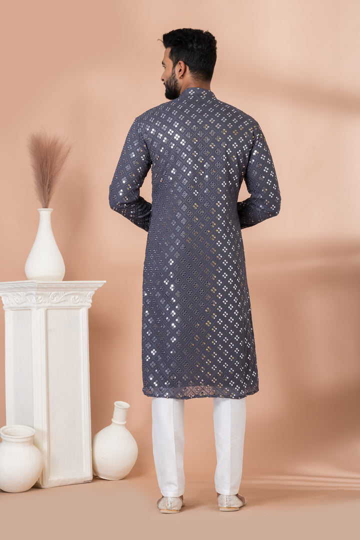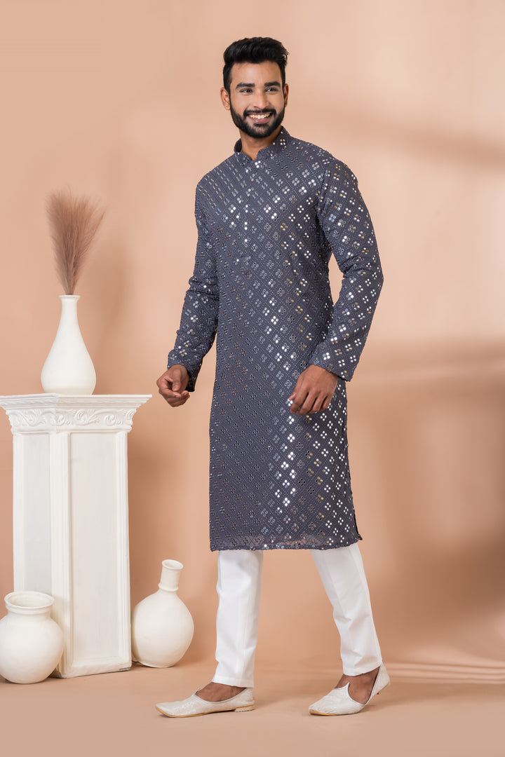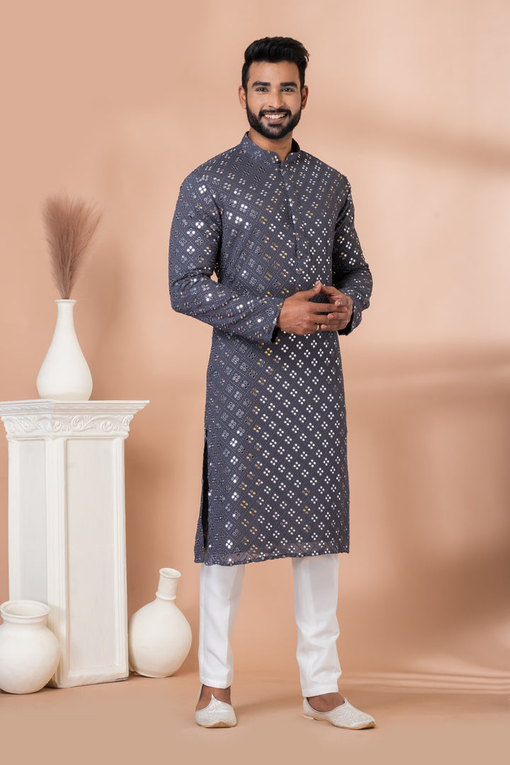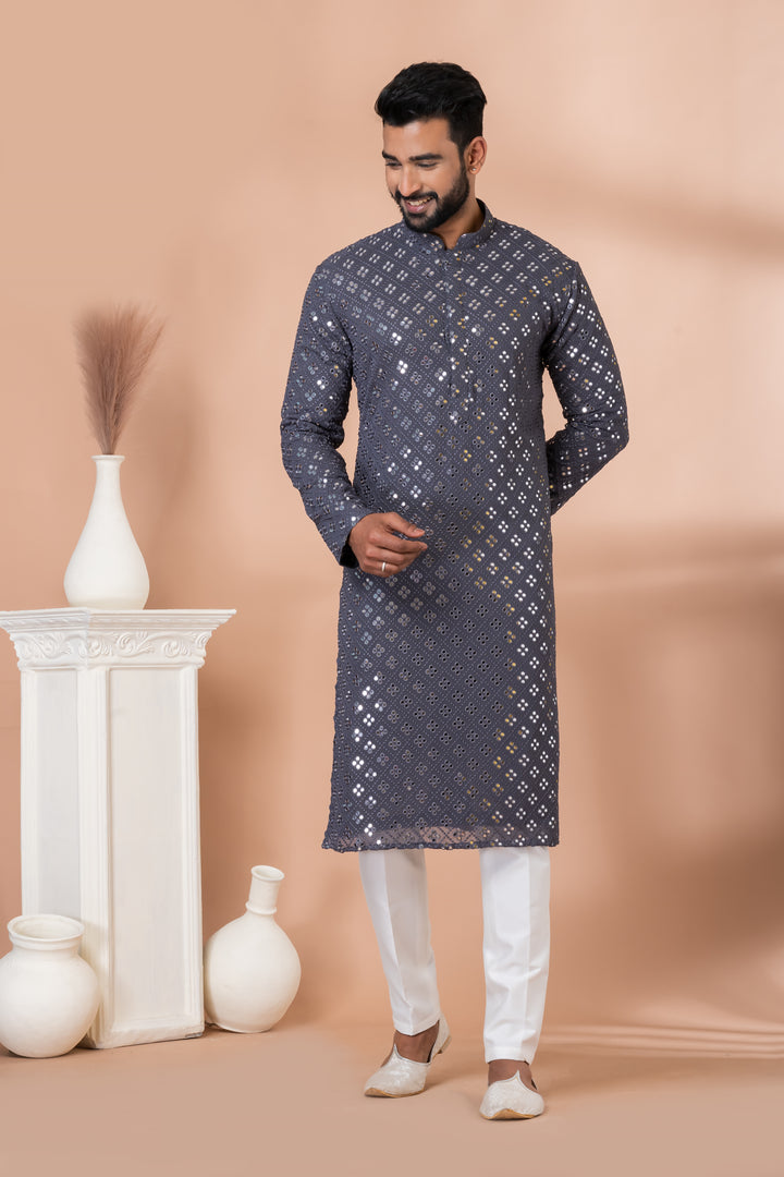 Designer Grey Viscose Sequence Kurta for Men: The Epitome of Elegance