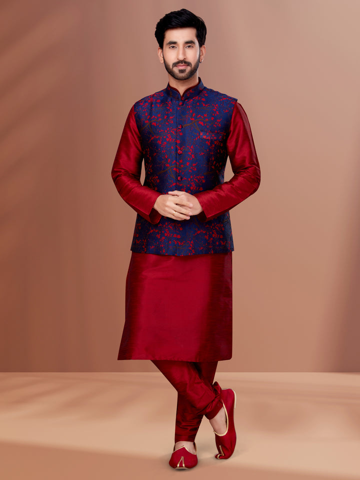 Welcome to Our Store, Where Tradition Meets Modernity. Our Red & Blue Silk Designer Kurta for Men Showcases Exceptional Craftsmanship and Meticulous Attention to Detail. Made From Premium Silk Fabric, This Kurta Caters to Those Who Value Elegance and Sophistication in Their Ethnic Wear. The Luxurious Silk Material Delivers a Sleek and Smooth Finish, Making It an Ideal Choice for Festive Occasions, Traditional Ceremonies, or Even Formal Gatherings.