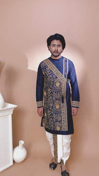 Elegant Traditional Embroidered Navy Blue Men's Kurta